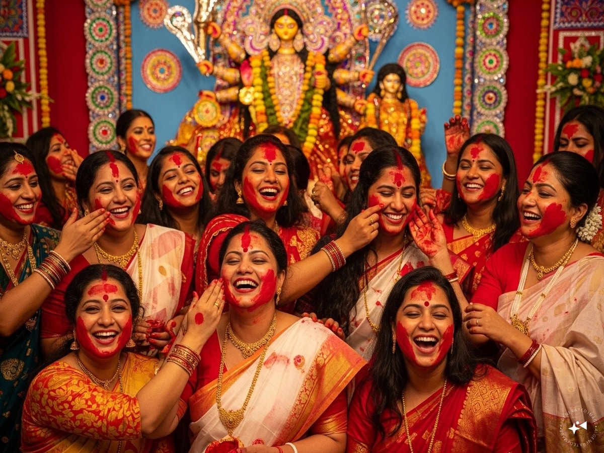 देवी दुर्गा की विदाई से ठीक पहले सुहागन महिलाएं एक दूसरे को सिंदूर लगाती हैं, जिसे सिंदूर खेला के नाम से जानते हैं. सिंदूर खेला का अर्थ है कि मां दुर्गा अपने मायके से वापस ससुराल कैलाश लौट रही हैं. उनके घर में सुख-समृद्धि बनी रहे. दुर्गा विसर्जन से ठीक पहले आरती और फूल अर्पित करते हैं. ये मां दुर्गा के प्रति कृतज्ञता और विदाई का प्रतीक है.