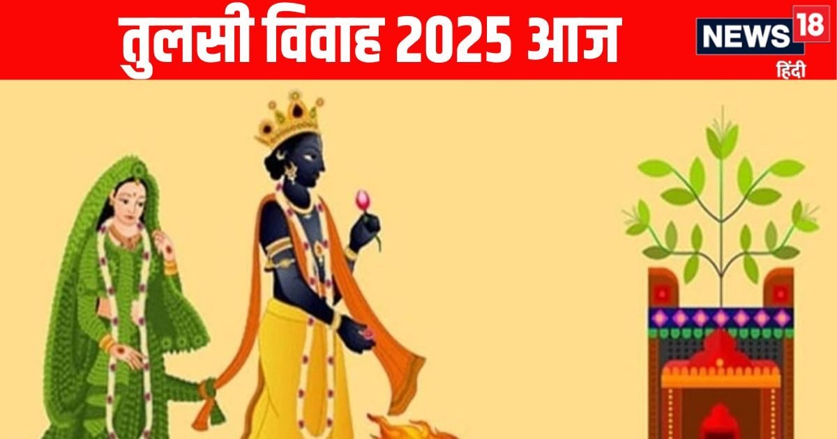 Tulsi Vivah 2025 Today: कार्तिक मास की शुक्ल पक्ष की द्वादशी तिथि को तुलसी विवाह का अत्यंत पावन पर्व मनाया जाता है और यह शुभ तिथि आज है. आज भगवान शालीग्राम और तुलसी माता का शुभ मुहूर्त में विवाह कर अक्षय पुण्य की प्राप्ति की जाती है. तुलसी विवाह केवल एक धार्मिक अनुष्ठान नहीं, बल्कि धर्म, भक्ति और ग्रह-संतुलन का दिव्य योग है. यह भगवान श्रीहरि विष्णु और माता तुलसी (देवी वृंदा) के दिव्य विवाह का प्रतीक है. इस विवाह से देव-शक्ति और प्रकृति-शक्ति का मिलन होता है, जिससे सम्पूर्ण सृष्टि में पुनः मंगल कार्यों का आरंभ माना जाता है. इस बार तुलसी विवाह पर त्रिपुष्कर योग समेत चार शुभ योग बन रहे हैं, जिससे आज के दिन महत्व और भी बढ़ गया है. आइए जानते हैं तुलसी विवाह का महत्व, पूजन विधि और विवाह का मुहूर्त…