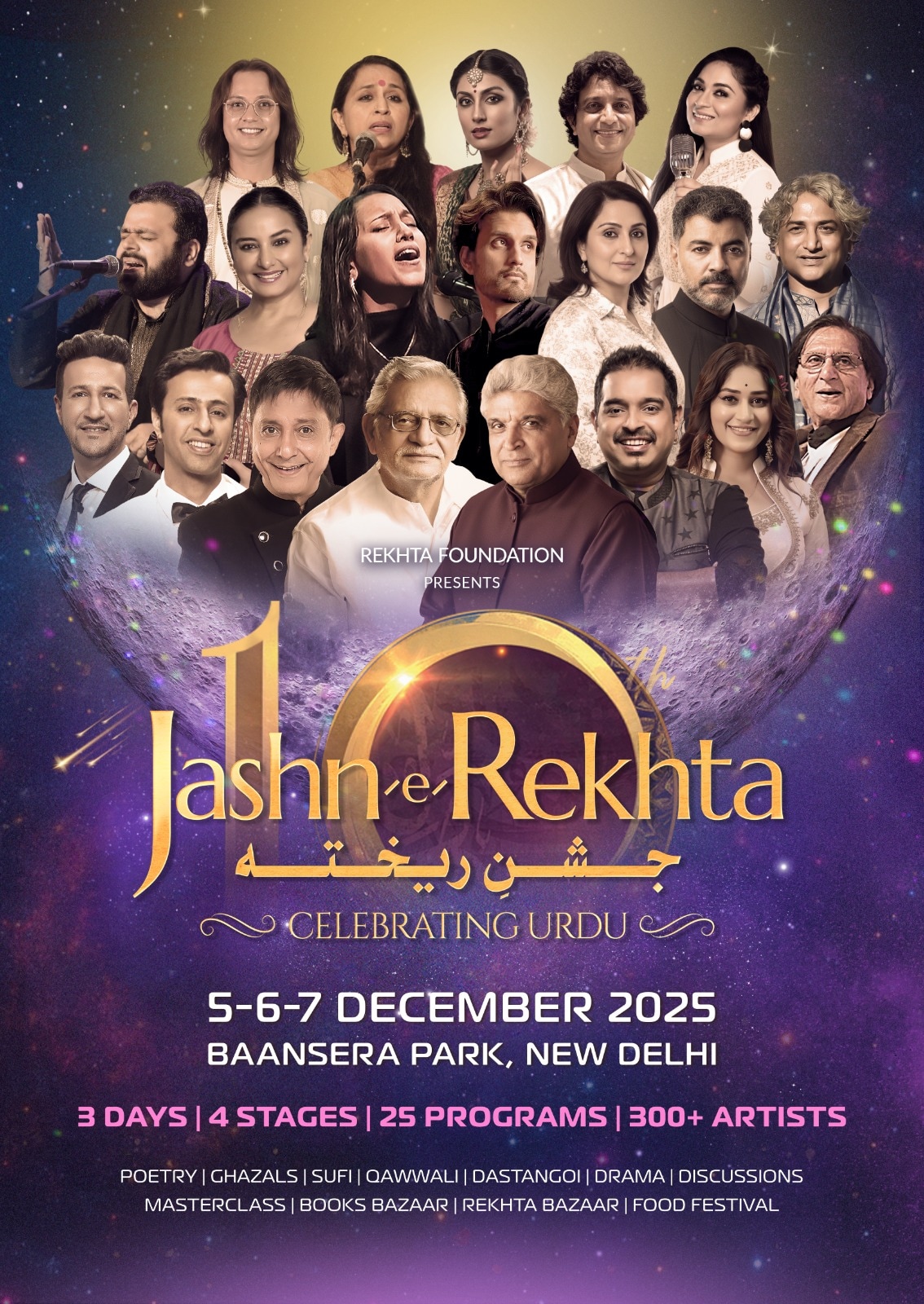 इस बार जश्न-ए-रेख्ता दिसंबर के शुरुआती वीकेंड में है. 5 दिसंबर 2025 को जश्न-ए-रेख्ता का आगाज अल्फाजों के जादूगर गुलजार करेंगे. वहीं उस शाम सुखविंदर सिंह की सुरील आवाज से महफिल सजेगी. मुख्य आयोजन 6 और 7 दिसंबर 2025 को होगा. इसमें 300 से अधिक कलाकार और 35 से अधिक सेशन्स पांच मंचों में किए जाएंगे. 2025 जश्न-ए-रेख्ता की जगह भी इस बार बदल गई है. इस बार दिल्ली में सराय काले खां के पास बने नए आशियाना बांसेरा पार्क में जश्न-ए-रेख्ता का 10वां जलला मनाया जाएगा जिसमें भारत और दुनिया भर के शायरों, लेखकों, संगीतकारों और सांस्कृतिक शख़्सियतों की शिरकत होगी.