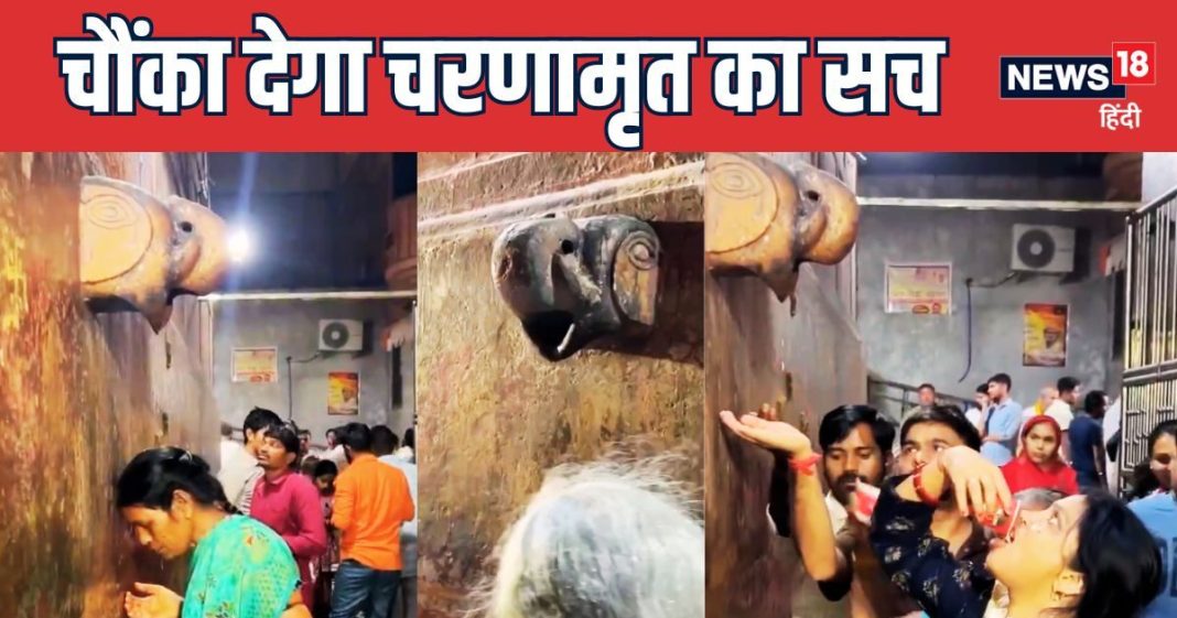 Vrindavan Temple Charanamrit Viral Video: कहते हैं भक्‍ति में बहुत शक्‍ति होती है. यही तो वजह है कि हजारों दुख-पीड़ा ल‍िए लोग जब भगवान के सामने पहुंचते हैं तो कुछ समय के ल‍िए ही सही, पर उन्‍हें मन की अनूठी शांति म‍िलती है. मथुरा-वृंदावन की बात करें तो राधा-कृष्‍ण की इस नगरी में गली-गली में मंदिर हैं, जहां भक्‍त दर्शन के लि‍ए पहुंचते हैं. लेकिन हाल ही में वृंदावन के एक मंदिर का ऐसा वीड‍ियो वायरल हुआ, ज‍िसने बड़ा सवाल खड़ा कर द‍िया है. वायरल हो रहे इस वीड‍ियो में लोग मंदिर में भगवान के दर्शन करने के बाद, दीवार पर बने एक स्‍त्रोत से बहता हुआ पानी लोग भगवान कृष्‍ण का चरणामृत समझकर पी रहे हैं. लेकिन असल में ये पानी कोई पव‍ित्र चरणामृत नहीं बल्‍कि AC से निकलने वाला पानी है.