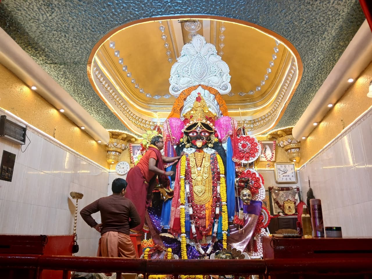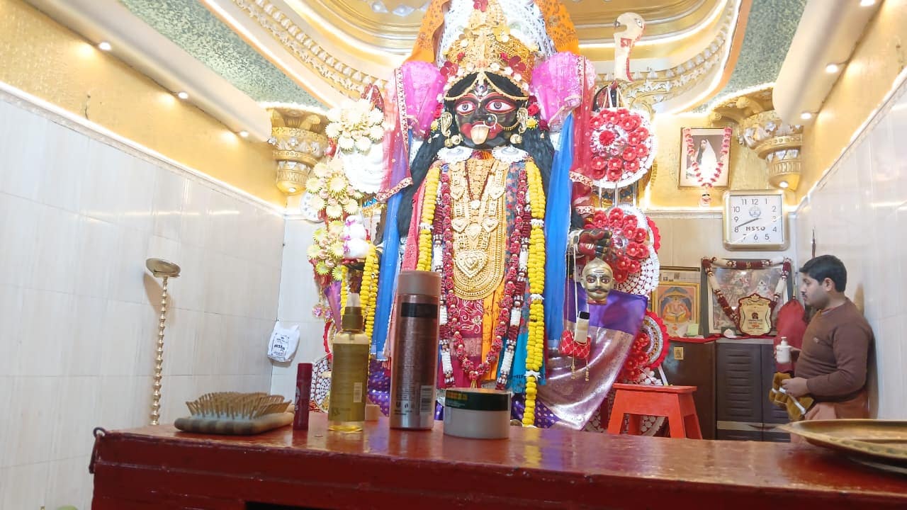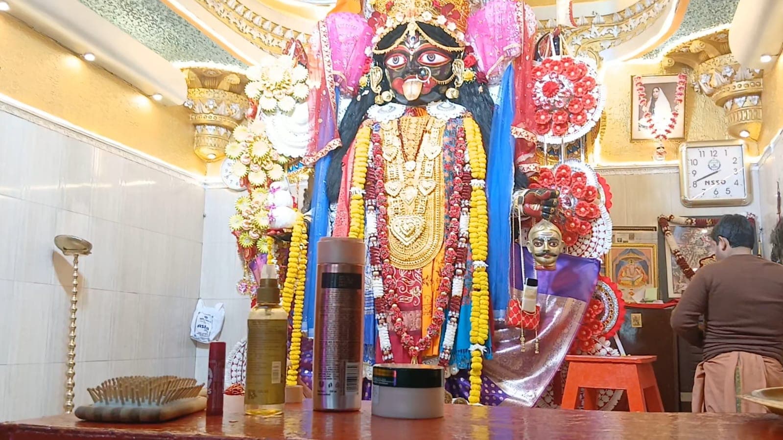 देवी अपने चार हाथों में एक खड़ग (इंसानी खोपड़ी) और एक स्मार्टवॉच पकड़े हुए हैं. बारो मां काली सिर्फ़ एक मूर्ति नहीं हैं, उन्हें घर की प्यारी बेटी या मां की तरह माना जाता है. यह पारिवारिक स्नेह उन्हें मिलने वाले मॉडर्न तोहफ़ों में दिखता है और वे सक्रिय रूप से इस्तेमाल करती हैं.