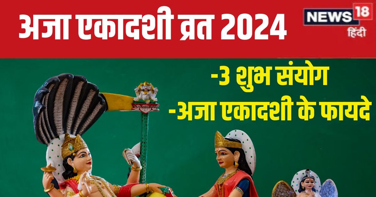 अजा एकादशी का व्रत भाद्रपद माह के कृष्ण पक्ष की एकादशी तिथि के दिन रखते हैं. इस साल अजा एकादशी के दिन 3 शुभ संयोग बन रहे हैं. इसके कारण भी यह व्रत काफी महत्वपूर्ण है. अजा एकादशी का व्रत राजा हरिश्चंद्र ने भी रखा था, जिसके कारण उनके जीवन में काफी सकारात्मक बदलाव देखने को मिले. तिरुपति के ज्योतिषाचार्य डॉ. कृष्ण कुमार भार्गव से जानते हैं कि अजा एकादशी पर कौन से 3 शुभ संयोग बन रहे हैं? अजा एकादशी व्रत रखने से कौन से फायदे होते हैं? अजा एकादशी व्रत का पारण किस समय है?