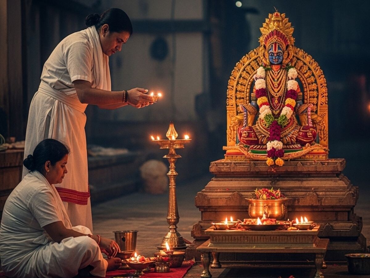- पूजा करने के बाद सीधे हाथ से आसन ना उठाएं, सबसे पहले आचमन करें और आचमन से जल लेकर भूमि पर अर्पित कर प्रणाम करें.