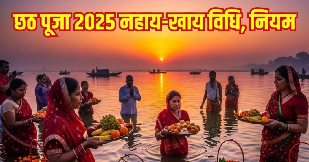 Chhath puja 2025 nahay khay vidhi: इस साल महापर्व छठ की शुरुआत 25 अक्टूबर को होगी, जिसका समापन 28 अक्टूबर को सुबह का अर्घ्य देकर किया जाएगा. दीपावली, गोवर्धन पूजा और भाई दूज के बाद लोकआस्था का पर्व छठ मनाया जाता है. इस पर्व में छठी मइया और सूरज देवता की पूजा की जाती है. ये पर्व प्रकृति और आस्था का महासंगम है, जो अब देश ही नहीं विदेशों तक मनाया जाने लगा है. चार दिनों तक चलने वाले इस पर्व में पहले दिन नहाय-खाय, दूसरे दिन खरना और तीसरे-चौथे दिन शाम और सुबह का अर्घ्य दिया जाता है. मुख्य रूप से बिहार, झारखंड, उत्तर प्रदेश और नेपाल में छठ पूजा धूमधाम से मनाया जाता है. चलिए जानते हैं नहाय-खाए की विधि के बारे में यहां…