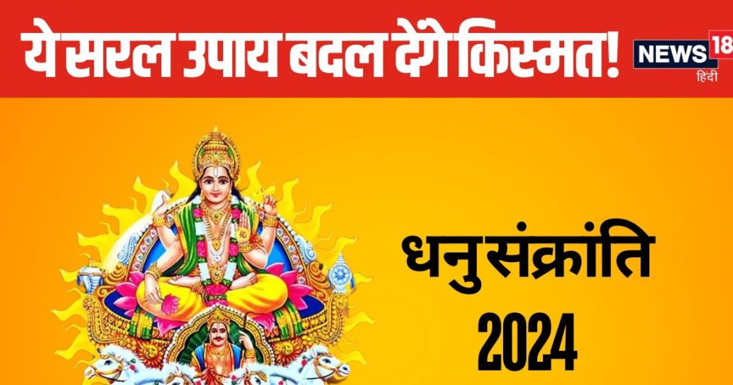 Dhanu sankranti 2024 upay: हिंदू धर्म में ज्योतिष का बहुत महत्व माना गया है. ज्योतिष शास्त्र में नौ ग्रहों व उनके राशि परिवर्तन की महत्ता के बारे में जिक्र किया जाता है. कहा जाता है कि जब कोई ग्रह एक राशि से दूसरी राशि में प्रवेश करता है तो उसका सभी 12 राशियों पर प्रभाव पड़ता है. इसके साथ ही बता दें कि सूर्य जब राशि परिवर्तन करते हैं तब उस तिथि को संक्रांति मनाई जाती है और सूर्य का गोचर जिस राशि में होती है उस राशि के नाम पर संक्रांति का नाम पड़ता है.