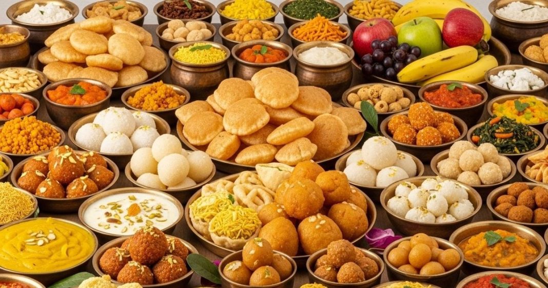 छप्पन भोग में शामिल व्यंजन बहुत विविध होते हैं. इसमें मीठे से लेकर नमकीन, फल से लेकर अनाज तक सब कुछ शामिल होता है. भोग में आमतौर पर पूड़ी, खीर, हलवा, लड्डू, दही-बड़ा, पापड़, चटनी, सेव, नमकीन, रबड़ी, माखन-मिश्री, फल, और तरह-तरह की सब्जियां होती हैं. कुछ स्थानों पर दूध से बने व्यंजन जैसे मावा, पेड़ा, रसगुल्ला, मालपुआ, दूधपुरी भी शामिल किए जाते हैं. इन सभी व्यंजनों को शुद्ध घी और सात्विक सामग्री से तैयार किया जाता है. इसका उद्देश्य सिर्फ स्वाद नहीं, बल्कि भगवान के प्रति पूर्ण समर्पण और आभार व्यक्त करना होता है.