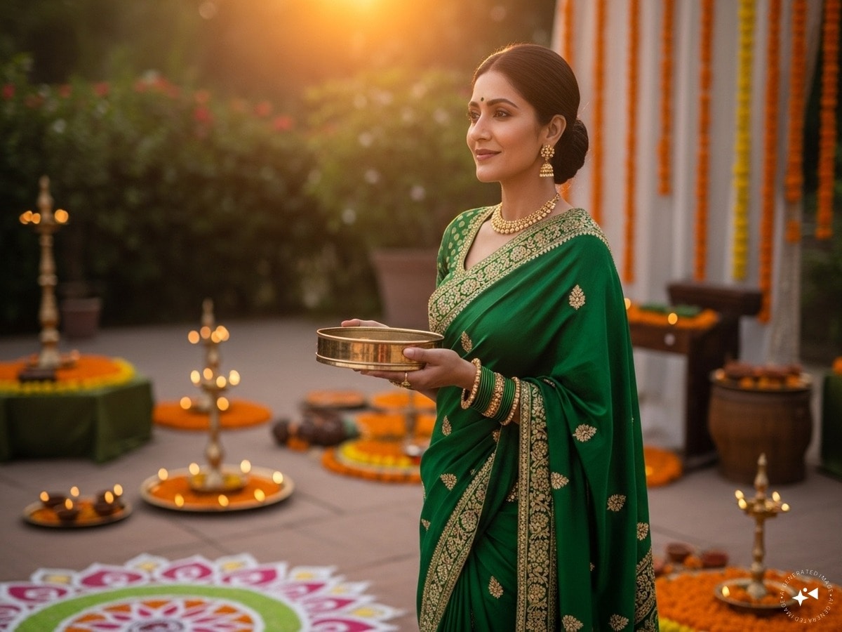 हरा रंग करवा चौथ पर शुभता और सौभाग्य का प्रतीक है. यह रंग न सिर्फ प्रकृति और ताजगी का एहसास दिलाता है, बल्कि शादीशुदा जीवन में स्थिरता और शांति का प्रतीक भी है. हरे रंग की चूड़ियां और साड़ी भारतीय परंपरा में सुहागिन स्त्रियों की पहचान मानी जाती हैं. अगर आप ग्रीन कलर का सूट या साड़ी पहनें तो यह न केवल खूबसूरत लगेगा, बल्कि आपके रिश्ते में नई ऊर्जा भी भर देगा.