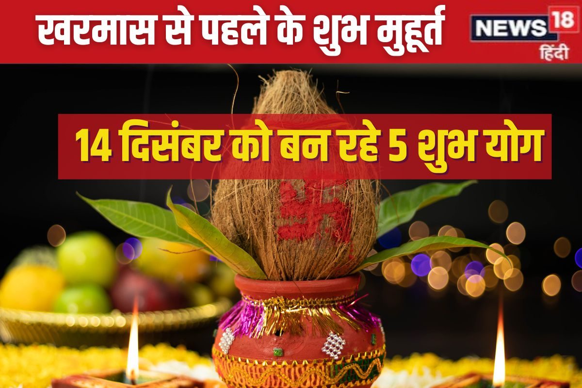 खरमास से पूर्व 14 दिसंबर का भी दिन शुभ है. इस दिन मार्गशीर्ष पूर्णिमा व्रत है और 5 शुभ योग बन रहे हैं. गजकेसरी योग, सिद्ध योग, साध्य योग, सर्वार्थ सिद्धि योग और अमृत सिद्धि योग बनेंगे.