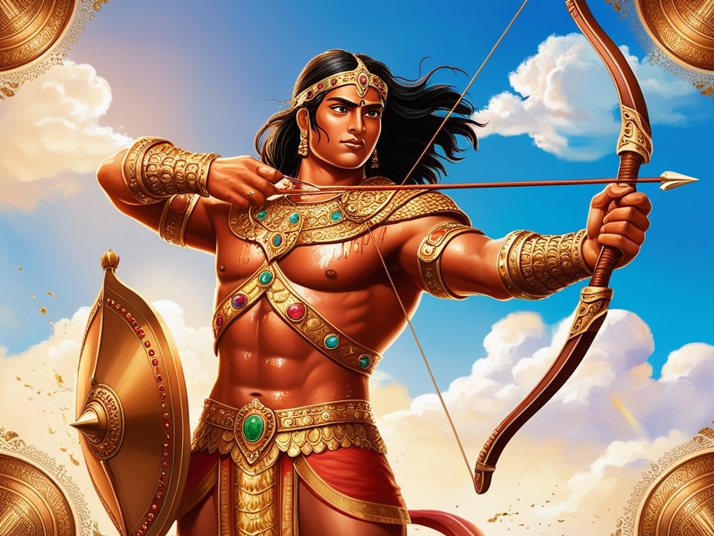 कर्ण सोने का कवच और सोने के कुंडल पहने हुए पैदा हुए थे. हालांकि बाद में कुंती ने कुंवारी ही मां बनने से डर गईं और उन्हें पैदा होते ही टोकरी में रखकर नदीं में बहा दिया. (image generated by Leonardo AI)