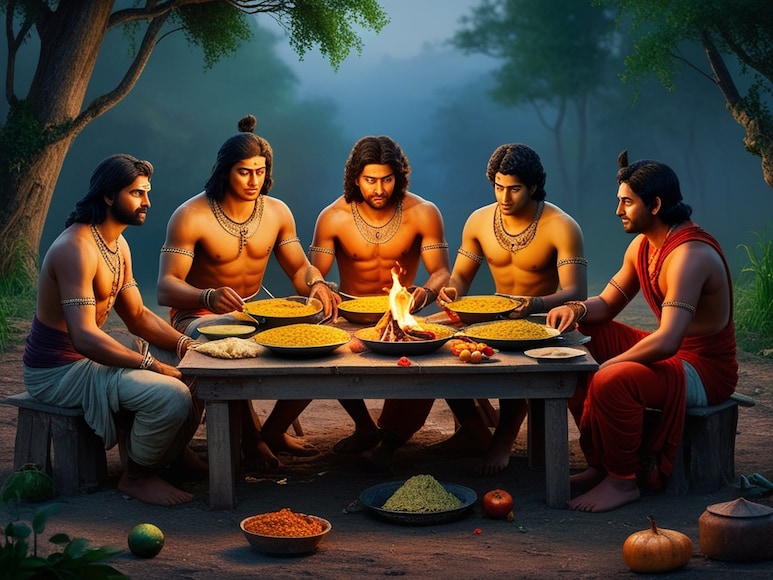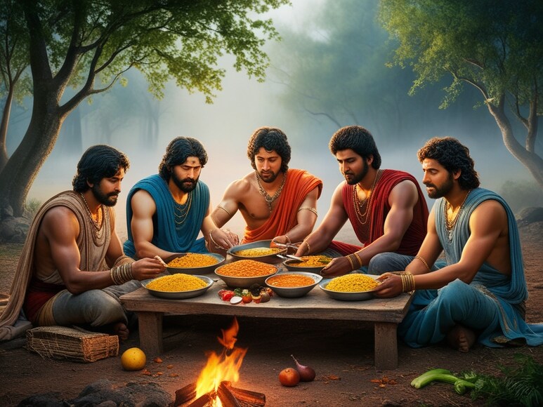 पांडव मांसाहार का सेवन करते थे. जब वह निर्वासन के दौरान जंगलों में रहे तो वहां उन्होंने शाकाहार के साथ मांसाहार का भी सेवन किया. (image generated by Leonardo AI)
