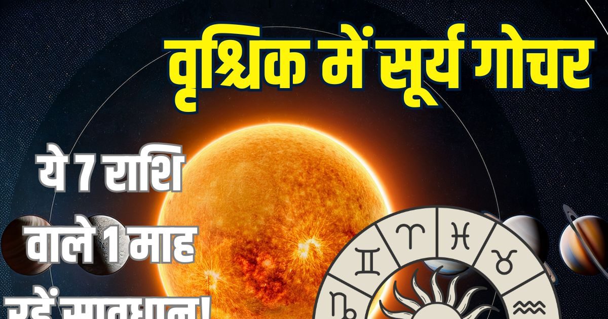 Surya Gochar In Vrishchik Rashi 2025: सूर्य का गोचर वृश्चिक राशि में 16 नवंबर को होने जा रहा है. उस दिन दोपहर में 01:44 बजे सूर्य का राशि परिवर्तन होगा. ग्रहों के राजा सूर्य 16 दिसंबर को 04:26 एएम तक वृश्चिक में रहेंगे. सूर्य का गोचर 7 राशिवालों पर नकारात्मक असर डाल सकता है. इन लोगों का 1 माह तक परेशानियों का सामना करना पड़ सकता है. कुछ लोगों पर इसका मिलाजुला असर देखने को मिल सकता है. आइए जानते हैं वृश्चिक में सूर्य गोचर का राशियों पर नकारात्मक प्रभाव के बारे में.