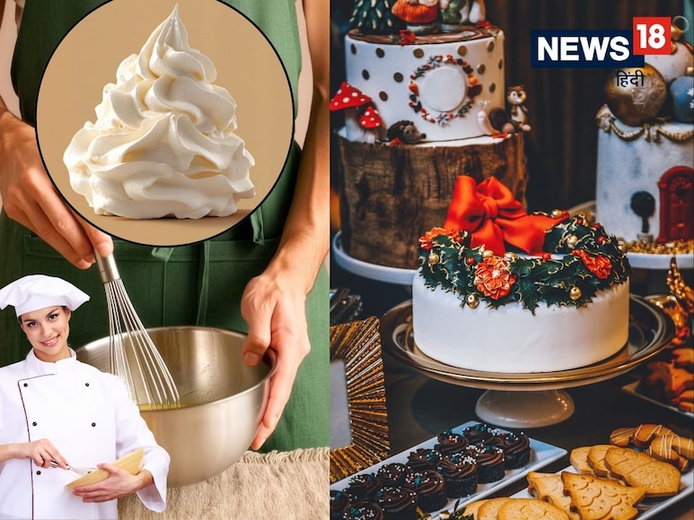 Cream Frosting For Cake Decoration : क्रिसमस(Christmas Cake Decoration) का जश्न हो या किसी परिवार के सदस्य का जन्मदिन, केक सजाना हर किसी का मन मोह लेता है. लेकिन सच कहें तो घर पर केक बनाने में सबसे बड़ी चुनौती होती है फ्रॉस्टिंग और आइसिंग. केक का बेस तो आसानी से बन जाता है, लेकिन इसे प्रोफेशनल लुक देना कठिन लगता है. क्या आपने कभी सोचा है कि घर पर ही बाजार जैसा परफेक्ट केक बनाया जा सकता है? जी हां! थोड़ी सी मलाई और आसान स्टेप्स से आप इसे सुपर क्रिमी और स्वादिष्ट फ्रॉस्टिंग दे सकते हैं और अपने केक को पूरी तरह सजाकर पार्टी का स्टार बना सकते हैं. तैयार हो जाइए, हम आपको स्टेप-बाय-स्टेप तरीका दिखाने वाले हैं!