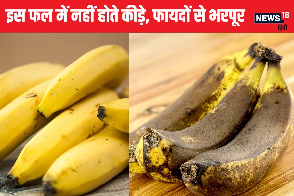 Banana Health Benefits: आप हर दिन तरह-तरह के फल-सब्जी का सेवन करते हैं. कई बार कुछ फलों और सब्जियों को काटने पर कीड़े निकल आते हैं. इन्हें देखते ही इन सब्जियों और फलों को खाने का मन नहीं करता. हालांकि, कुछ फल, सब्जियां ऐसी भी होती हैं, जिनमें बहुत कम ही कीड़े देखने को मिलते हैं. लेकिन, क्या आप उस फल का नाम जानते हैं, जिसमें कभी भी कीड़े लगते ही नहीं? नहीं जानते हैं तो हम आपको बताते हैं, वह एक इकलौता फल है केला (Banana). आपने भी देखा होगा कि चाहे कितना भी गला हुआ केला क्यों न हो, उसमें एक भी कीड़े नहीं दिखते. चलिए जानते हैं ऐसा क्यों है और केला खाने के क्या फायदे होते हैं.