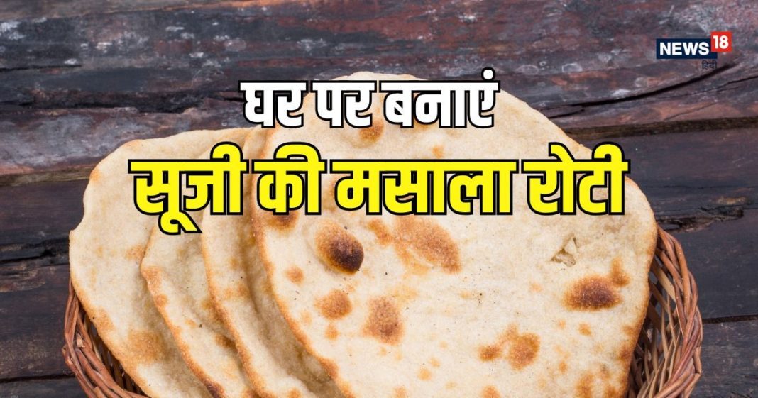 How To Make Sooji Masala Roti: एक ही रोटी रोज खाते-खाते बोर हो गए हैं तो इसमें कुछ बदलाव जरूरी है. ऐसे में आप घर पर सूजी से तैयार होने वाला मसाला रोटी लंच में बनाएं और एक मज़ेदार ट्विस्ट के साथ इसका आनंद उठाएं. यह रोटी सूजी , गेहूं के आटे, उबले आलू और मसालों से बनती है और खाने में लाइट, टेस्‍टी और पौष्टिक से भरपूर होती है. साधारण रोटी की तुलना में यह रोटी थोड़ी मसालेदार और खुशबूदार होती है, जो जायके को और भी मज़ेदार बनाती है. सूजी मसाला रोटी न सिर्फ खाने में टेस्टी होती है, बल्कि इसे बनाना भी बहुत आसान है. इसे अचार, दही या किसी भी सब्जी के साथ सर्व किया जा सकता है. खासतौर पर बच्चों और ऑफिस जाने वालों के लिए यह एक परफेक्ट ऑप्शन है क्योंकि इसे जल्दी से बनाया जा सकता है और यह पेट भरने के साथ-साथ पौष्टिक भी होती है.