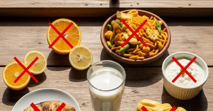 दूध के साथ संतरा, मछली, नमकीन चीजें, दही और कटहल खाने से पाचन खराब हो सकता है, गैस, एसिडिटी और एलर्जी जैसी समस्याएं बढ़ सकती हैं.