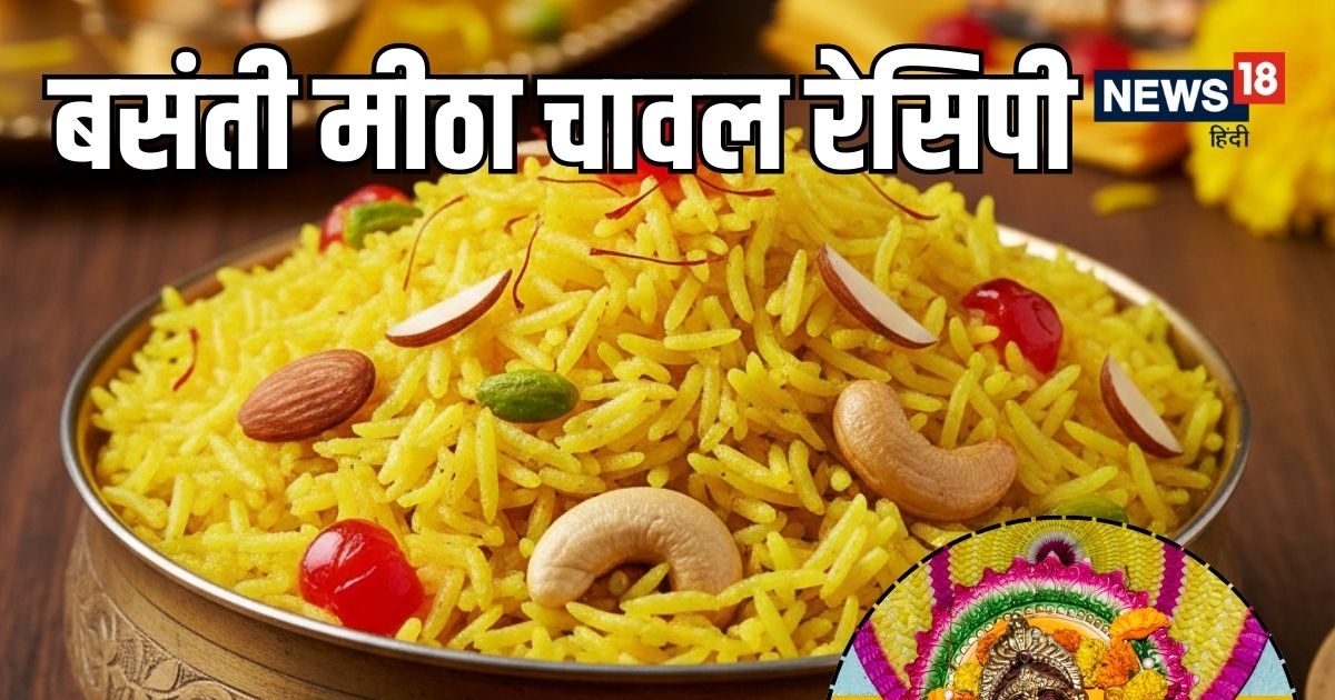 Yellow Sweet Rice Recipe for Basant Panchami : बसंत पंचमी का त्योहार विद्या और बुद्धि की देवी माँ सरस्वती को समर्पित है. इस शुभ अवसर पर पीले रंग का विशेष महत्व होता है. इस दिन लोग न केवल पीले वस्त्र धारण करते हैं, बल्कि घरों में पीले रंग के मीठे पकवान भी बनाए जाते हैं. इन पकवानों में सबसे लोकप्रिय हैं ‘मीठे बसंती चावल’ (Zarda Rice). यह डिश जितनी स्वादिष्ट है, इसे बनाना उतना ही आसान है. लेकिन खिले-खिले और खुशबूदार चावल बनाने के लिए कुछ छोटी मगर जरूरी बातों का ध्यान रखना पड़ता है. तो आइए जानते हैं इसे बनाने का तरीका और खास कुकिंग टिप्स-