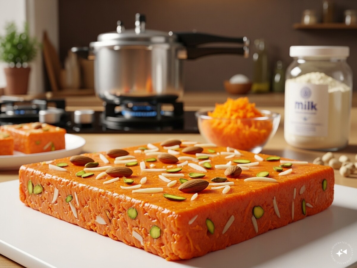 Carrot Barfi Recipe: सर्दियों का मौसम और घर में मीठा बनाने का मन-ये दोनों अक्सर साथ आते हैं. गाजर की मिठाई का नाम आते ही अकसर लोगों के दिमाग में घंटों की मेहनत और गाजर घिसते-घिसते हाथों का दर्द उभर आता है, लेकिन क्या सच में स्वादिष्ट गाजर की बर्फी बनाने के लिए इतनी मेहनत करना जरूरी है? जवाब है-बिलकुल नहीं! अब आप मिनटों में, बिना किसी भारी मेहनत के, घर पर हलवाई जैसी स्वादिष्ट गाजर की बर्फी बना सकते हैं. यह रेसिपी खास उन लोगों के लिए है जिन्हें मिठाई का असली स्वाद चाहिए लेकिन समय कम है. हमने इस रेसिपी में प्रेशर कुकर का स्मार्ट इस्तेमाल किया है, जिससे गाजर नरम हो जाती है और स्वाद और रंग दोनों बरकरार रहते हैं. साथ ही इसमें मिल्क पाउडर और देसी घी का इस्तेमाल इसे बाजार वाली मिठाई जैसा लाजवाब टेस्ट देता है. इस आसान और तेज़ रेसिपी के जरिए आप बच्चों और परिवार के लिए सर्दियों में एक परफेक्ट मिठाई तैयार कर सकते हैं. अब न घंटों की मेहनत, न जलते दूध की चिंता-बस तैयार गाजर की बर्फी, जो हर किसी के चेहरे पर मुस्कान ले आए.