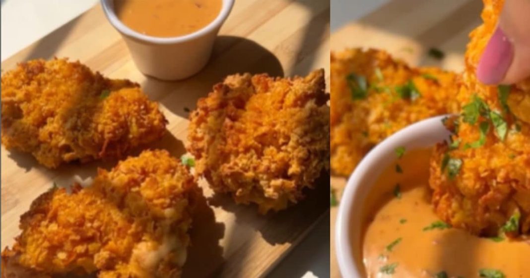 ड्राई कोटिंग के लिए कुचले हुए कॉर्नफ्लेक्स (Crushed Cornflakes) लें.