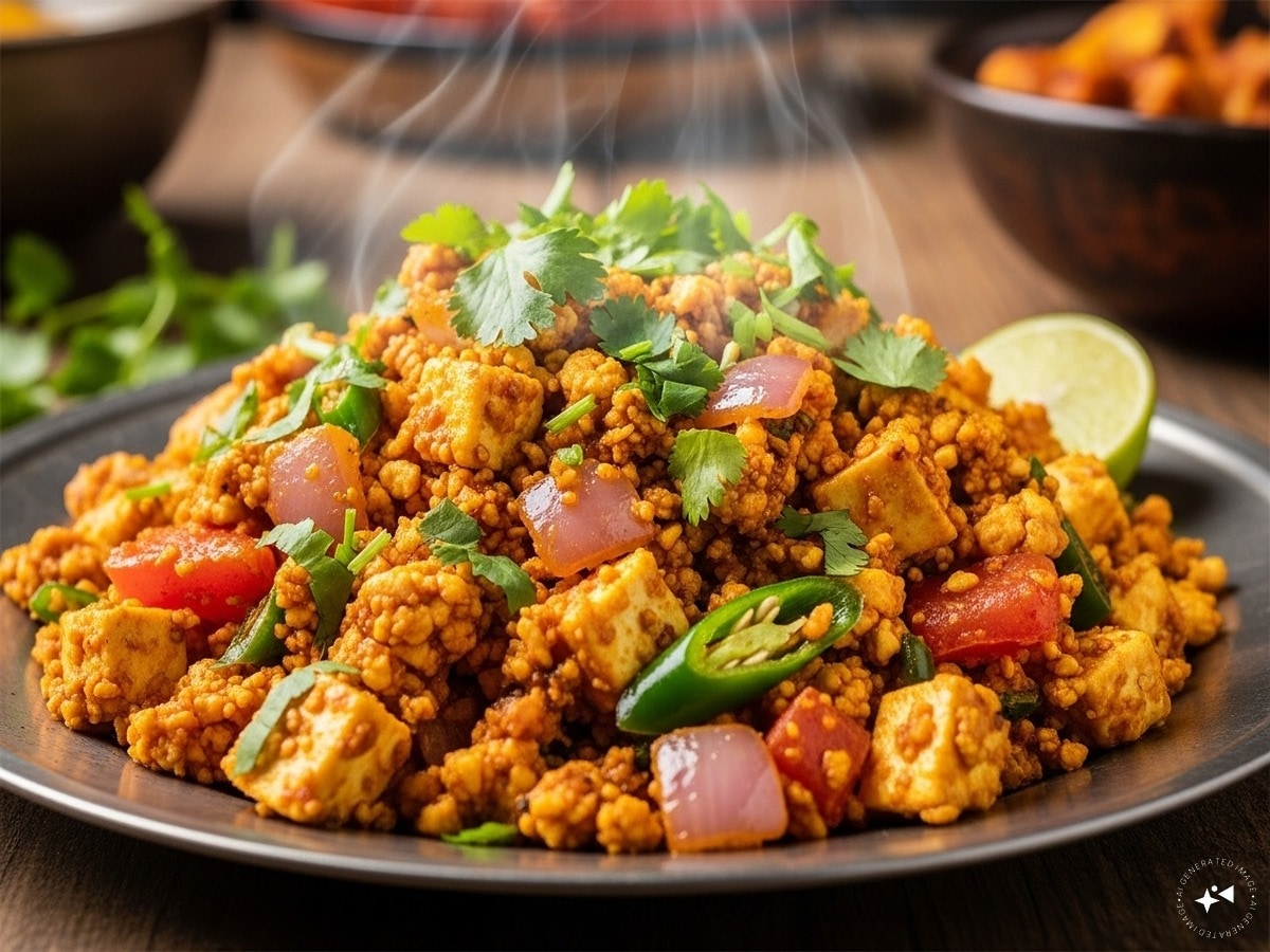 • स्टेप 5: 3-4 मिनट धीमी आंच पर पकाएं, फिर गरम मसाला और हरा धनिया डालकर मिक्स करें. आपकी झटपट ढाबा स्टाइल पनीर भुर्जी तैयार है.