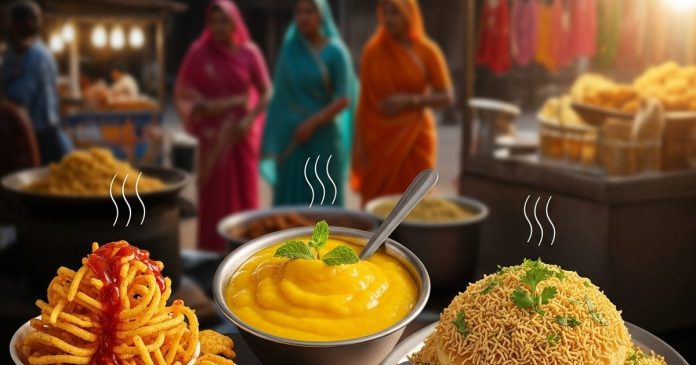 Gujarat Street Food: भारत की बात हो और खाने का ज़िक्र न हो, ऐसा हो ही नहीं सकता! हर राज्य के अपने फ्लेवर हैं – कहीं मसालों का जलवा तो कहीं मिठास की बरसात. आज हम आपको ले चलते हैं गुजरात की गलियों में, जहां हर मोड़ पर कुछ नया चखने को मिल जाता है. गुजरात सिर्फ गरबा और नवरात्रि के लिए नहीं, बल्कि अपने स्ट्रीट फूड्स के लिए भी पूरे देश में फेमस है. यहां का खाना जितना रंगीन है, उतना ही मज़ेदार भी. गुजरात की गलियों में चलते हुए अगर आपको लाल चटनी की खुशबू, तले हुए आलू की खनक या आमरस की मीठी महक आ जाए, तो समझ लीजिए आप सही जगह पर हैं. वहां के लोग खाने को सिर्फ पेट भरने के लिए नहीं, बल्कि दिल से एंजॉय करने के लिए खाते हैं. सर्दियों में गरमागरम भुंगड़ा बटाटा, गर्मियों में ठंडा-ठंडा आमरस, और हर सीजन में चटपटा सेव खमण – यही है असली गुजराती स्ट्रीट फूड की जान. गुजरात में छुट्टी का मतलब है – घर में बैठना नहीं, बल्कि दोस्तों और फैमिली के साथ बाहर निकलकर कुछ नया ट्राय करना. यही तो है उनकी लाइफस्टाइल – घूमो, खाओ, मुस्कुराओ! तो चलिए इस आर्टिकल में जानते हैं गुजरात की उन तीन डिशों के बारे में, जिनका नाम सुनते ही मुंह में पानी आ जाए.