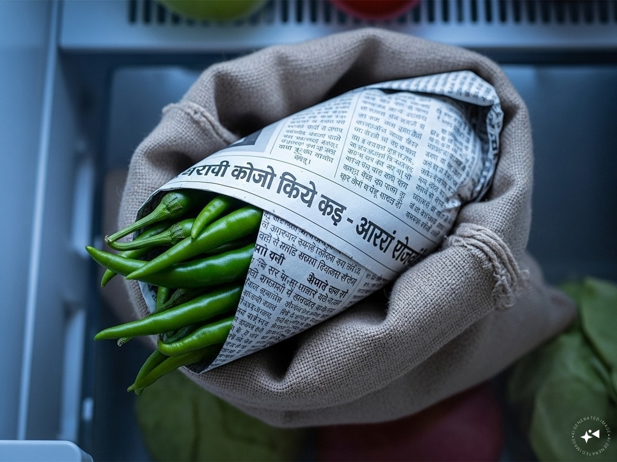 एक और आसान तरीका है हरी मिर्च को अखबार या बटर पेपर में लपेटकर रखना. पेपर नमी सोख लेता है और मिर्च को खराब होने से बचाता है. इसके बाद इन्हें किसी कपड़े की पोटली में डालकर फ्रिज के वेजिटेबल ड्रॉअर में रखें. यह तरीका भी मिर्च को लंबे समय तक हरा-भरा बनाए रखता है.