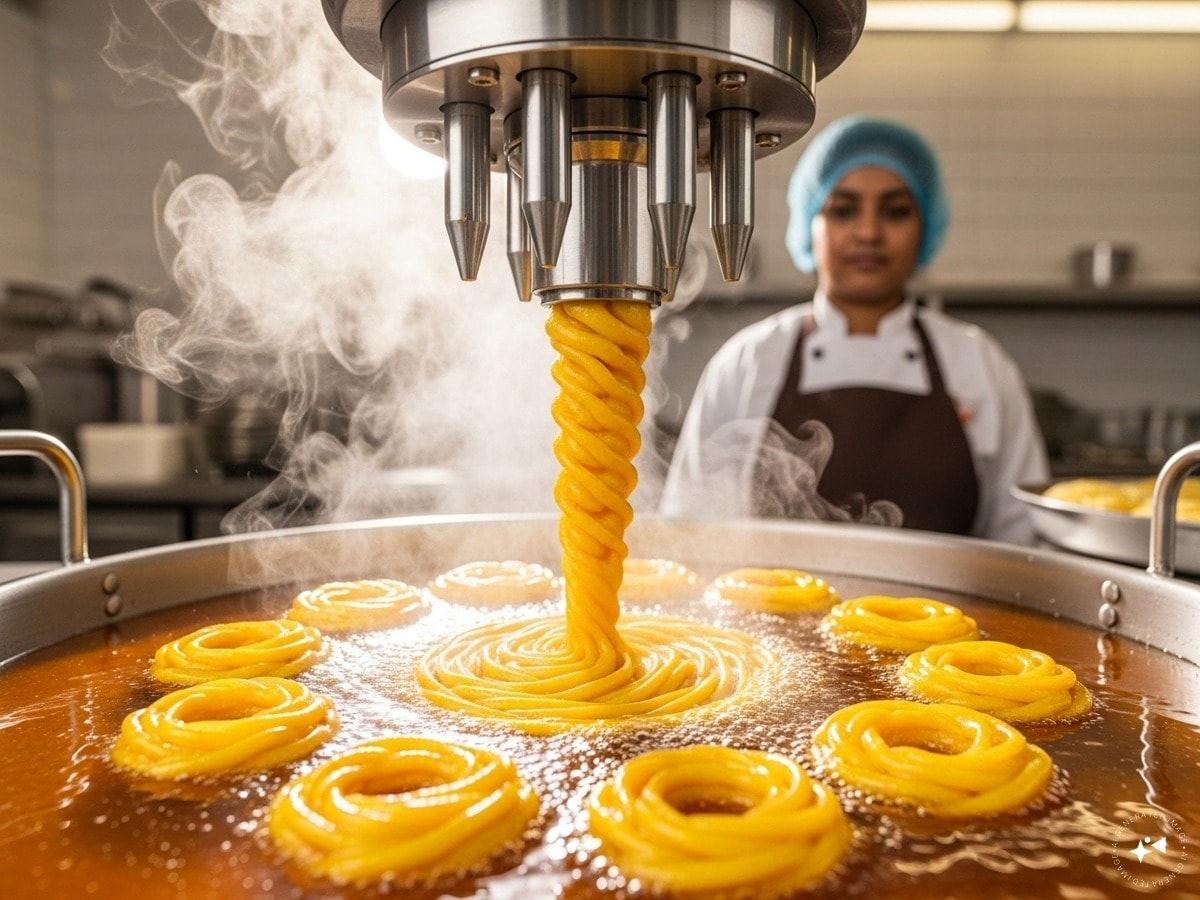 वीडियो में साफ दिखता है कि इस मशीन में कई नोजल्स (nozzles) लगे होते हैं, जो गाढ़ा बैटर गोल आकार में डालते हैं. नीचे गोल प्लेटफॉर्म लगे हैं जिन पर ये बैटर एक समान शेप में गिरता है और इमरती का आकार ले लेता है. कुछ ही सेकंड में बैटर सुनहरा दिखने लगता है. फिर मशीन उस प्लेटफॉर्म को धीरे-धीरे नीचे करती है जहां गरम चाशनी (sugar syrup) भरी होती है. इमरती को कुछ देर तक चाशनी में डुबोकर रखा जाता है ताकि मिठास अच्छे से अंदर तक पहुंच जाए.