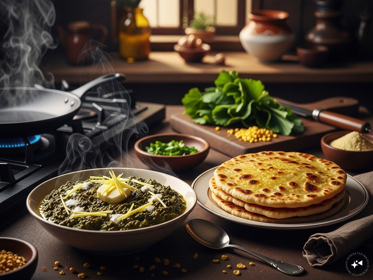 Sarson ka saag makke ki roti recipe: सर्दियों का मौसम आते ही दिल कुछ खास खाने को तरसने लगता है. ऐसे में अगर रसोई से सरसों के साग और मक्के की रोटी की खुशबू आने लगे, तो बस सर्दी का मजा पूरा हो जाता है. ये डिश सिर्फ पंजाब की पहचान नहीं, बल्कि पूरे उत्तर भारत में सर्दियों की शान है. देसी घी में तैरता हुआ साग, गुड़ की मिठास और मक्के की रोटी की गर्माहट हर बाइट को यादगार बना देती है. असल में, यह सिर्फ खाना नहीं, बल्कि एक परंपरा है जो पीढ़ियों से स्वाद और सुकून दोनों देती आ रही है. अगर आपने अब तक इसे घर पर बनाने की कोशिश नहीं की, तो इस बार ट्राय जरूर करें. क्योंकि एक बार असली पंजाबी स्टाइल में बना सरसों का साग और मक्के की रोटी खा ली, तो इसका स्वाद जिंदगीभर याद रहेगा. सर्दियों की ठंडी सुबह हो और प्लेट में गरमा गरम मक्के की रोटी के साथ सरसों का साग. ऊपर से एक चम्मच देसी घी और साथ में गुड़ की डली. बस फिर क्या. मूड सेट.