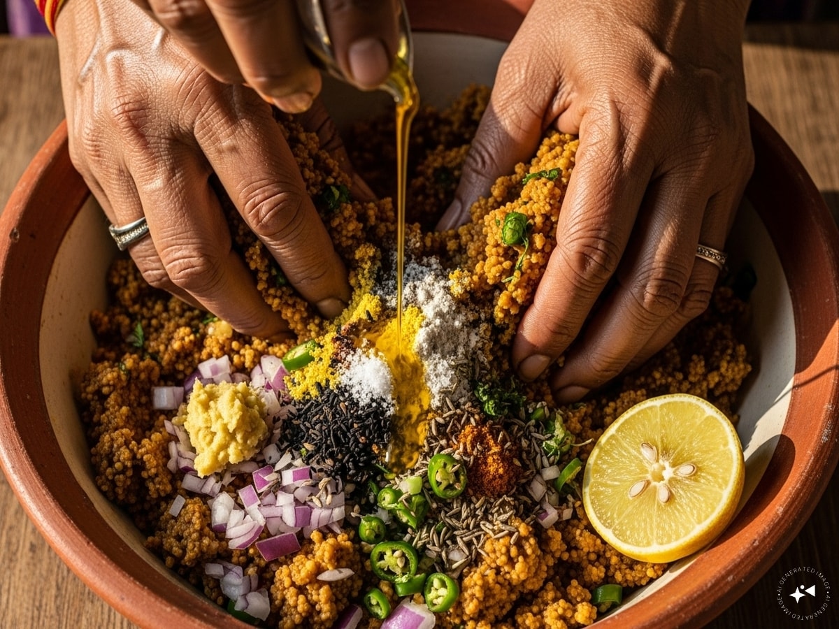 सत्तू में बारीक कटा प्याज, लहसुन-अदरक का पेस्ट, हरी मिर्च, नमक, अजवाइन, नींबू रस और सरसों का तेल डालकर अच्छे से मिक्स करें. अगर मिश्रण थोड़ा सूखा लगे, तो कुछ बूंदें पानी की डालें ताकि फिलिंग सॉफ्ट बने। यही वो दादी-नानी का सीक्रेट टिप है जिससे लिट्टी अंदर तक फ्लेवर से भरी रहती है.