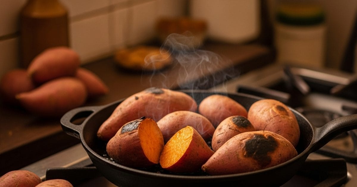 -शकरकंद अपने ही स्टार्च और मिठास में पकता है, और लोहे का तवा उसे वही देहाती, मिट्टी-सी खुशबू देता है जो असली अंगीठी वाली शकरकंद का सिग्नेचर फ्लेवर है.