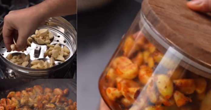 शिखा जैन की इस आसान रेसिपी में लहसुन की कलियों को पहले इडली वाले बर्तन में कुछ मिनट स्टीम किया जाता है, जिससे उनका स्वाद और मुलायमपन बढ़ जाता है, फिर देगी मिर्च, कश्मीरी मिर्च, हल्दी, धनिया, अमचूर और नमक जैसे मसालों में अच्छी तरह मिलाया जाता है. इसके बाद गर्म सरसों तेल में सरसों दाना, मेथी, साबुत लाल मिर्च, हींग और करी पत्तों का तड़का तैयार करके लहसुन पर डाला जाता है, जिससे अचार का फ्लेवर तुरंत गहरा हो जाता है.