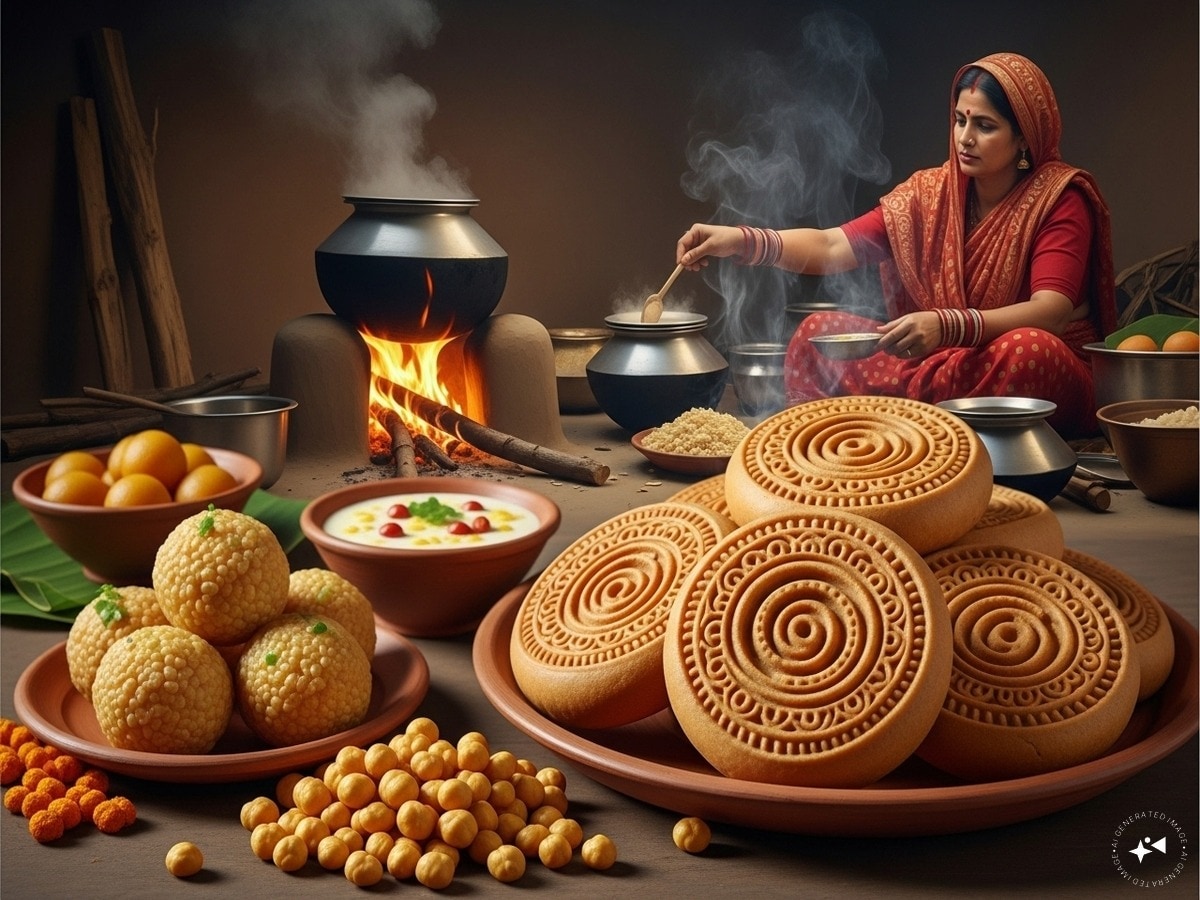 बिहार में छठ पूजा का मतलब ही है स्वाद और परंपरा का संगम. यहां ठेकुआ सबसे जरूरी प्रसाद माना जाता है, जो गेहूं के आटे, गुड़ और देसी घी से बनाया जाता है. इसे लकड़ी के सांचे से सजाकर धीमी आंच पर तला जाता है, जिससे इसकी खुशबू पूरे घर में फैल जाती है. इसके अलावा कसर के लड्डू, रसीया खीर और भुना चना भी पूजा में बनाए जाते हैं. गांवों में आज भी मिट्टी के चूल्हे पर लकड़ी की आंच में ये पकवान तैयार किए जाते हैं, जो इनके स्वाद को और भी देसी बना देते हैं.