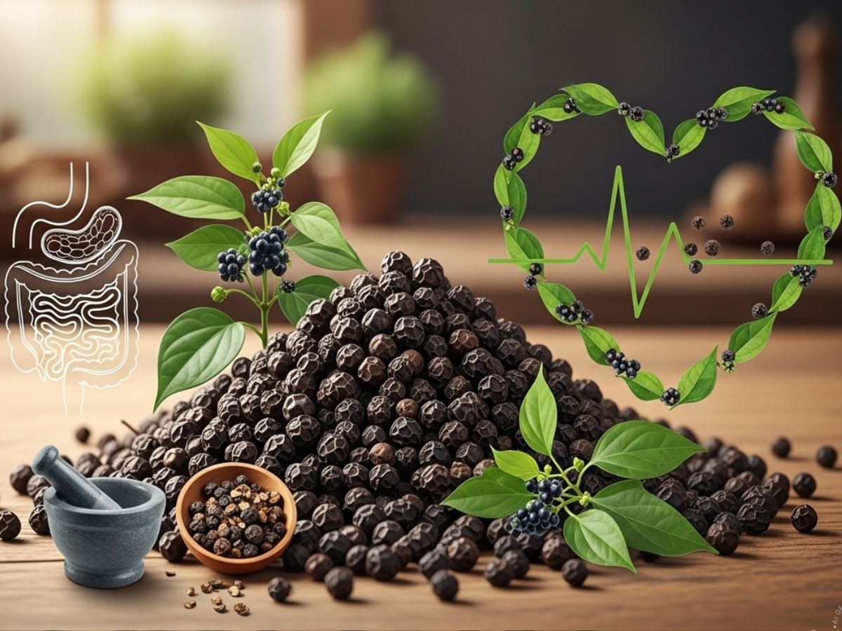 काली मिर्च में एंटीऑक्सीडेंट्स, एंटीबैक्टीरियल, पाइपेरिन और एंटी-इंफ्लेमेटरी गुण होते हैं, जो इसे दवा बनाते हैं. आयुर्वेद में काली मिर्च को मरीच कहा जाता है, जिसमें वात और कफ दोष को संतुलित करने की शक्ति होती है.