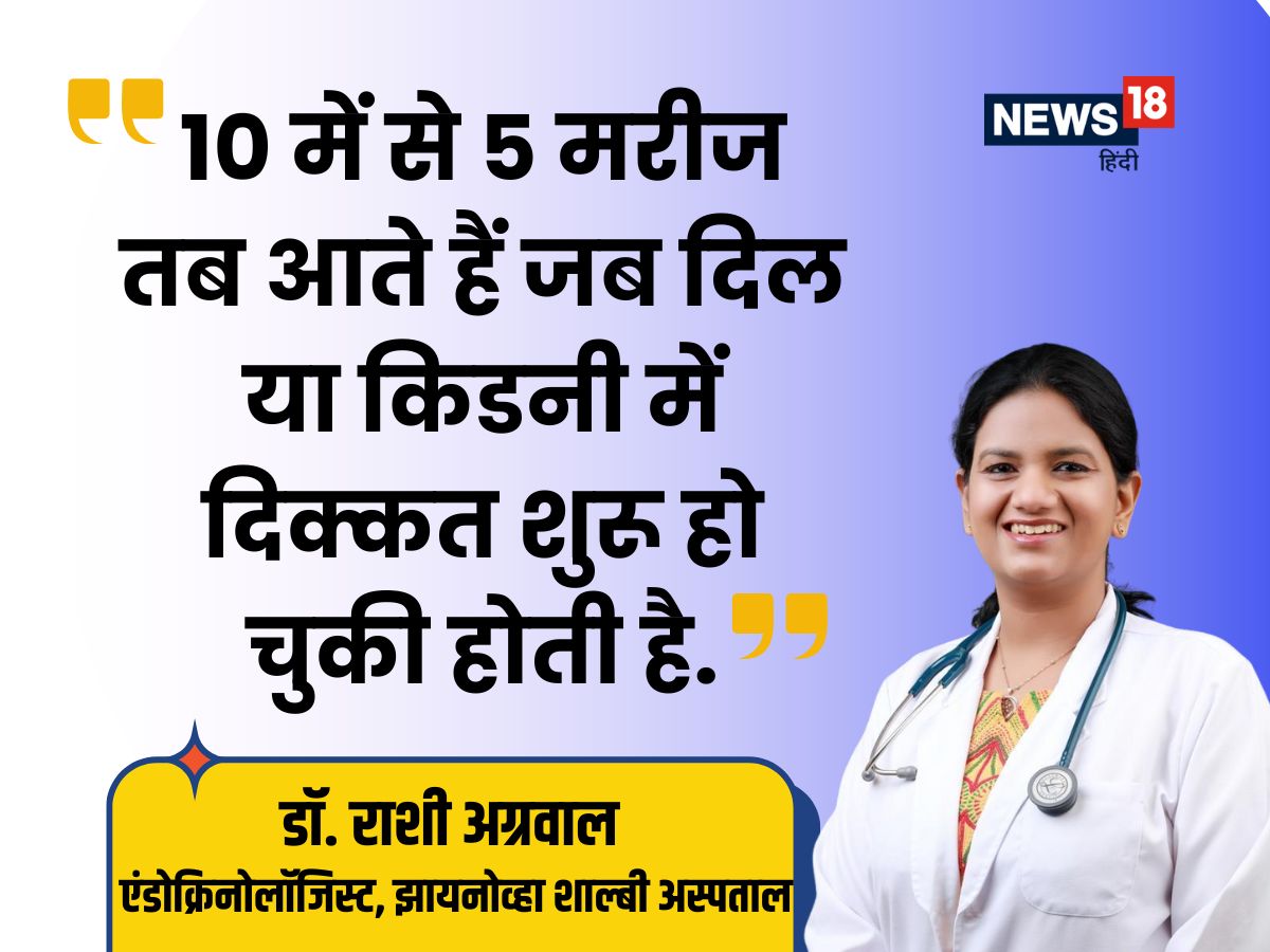डॉ. राशी अग्रवाल बताती हैं, “यह बीमारी धीरे-धीरे बढ़ती है, इसलिए कई बार लोगों को पता ही नहीं चलता कि उन्हें डायबिटीज है. 30 से 65 साल की उम्र के लगभग 10 में से 5 मरीज मेरे पास तब आते हैं जब उन्हें किडनी या दिल की दिक्कतें शुरू हो चुकी होती हैं.” उन्होंने बताया कि जागरूकता की कमी, नियमित हेल्थ चेकअप न करवाना और यह धारणा कि शुगर सिर्फ बुजुर्गों को होती है. ये सारी वजहें बीमारी को देर से पकड़ने का कारण बनती हैं.