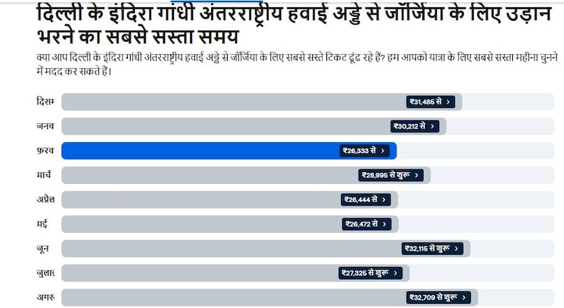 दिल्ली से जॉर्जिया का एवरेज एयर फेयर. (स्क्रीन ग्रैब)