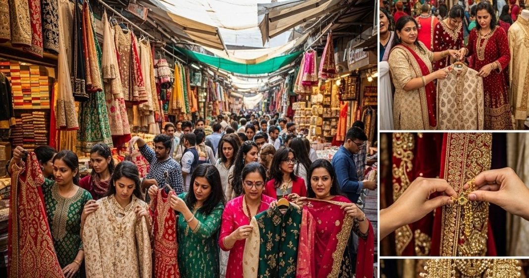 दिल्ली के चांदनी चौक, करोल बाग और लाजपत नगर वेडिंग शॉपिंग के लिए सबसे भरोसेमंद बाजार माने जाते हैं, जहां ब्राइडल लहंगे, इंडो-वेस्टर्न ड्रेसेस, मेहंदी आउटफिट, जूलरी, फुटवियर और ऐक्सेसरीज तक हर चीज़ बेहद बड़ी वैरायटी और किफायती दामों में आसानी से मिल जाती है.