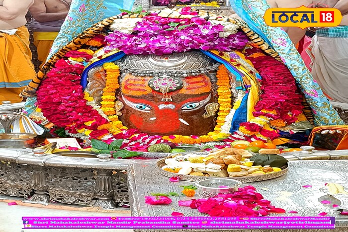 उज्जैन के राजा भगवान महाकाल को कपूर आरती कर भोग लगाया गया. मंत्रोच्चर के साथ भगवान को रजत चंद्र, त्रिशूल, मुकुट और आभूषण अर्पित कर श्रृंगार किया गया. भांग, चन्दन ड्रायफ्रूट और भस्म चढ़ाई गई. भगवान महाकाल ने शेषनाग का रजत मुकुट, रजत की मुण्डमाल और रुद्राक्ष की माला के साथ-साथ सुगन्धित पुष्प से बनी फूलों की माला धारण की.