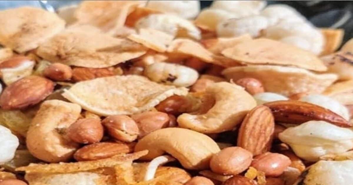 एक कड़ाही में एक स्पून घी डालकर गर्म करना है. इसके बाद इसमें एक कप मूंगफली, एक कप बादाम, एक कप काजू और एक कप मखाना डालकर इन सभी चीजों को अच्छी तरह से भून लेना है.