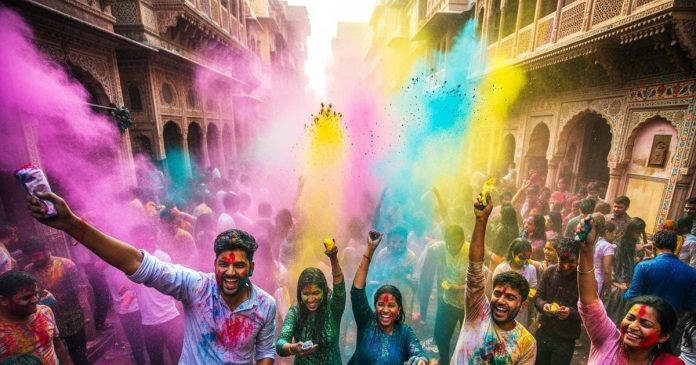 कृष्ण–राधा की रंग लीला, जिससे रंग खेलने की रसपूर्ण परंपरा निकली.