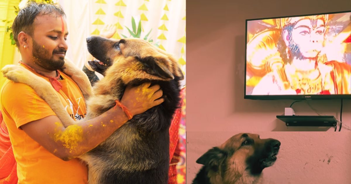 हनुमान जयंती पर रैगनार नामक जर्मन शेपर्ड कुत्ते का वीडियो वायरल हुआ, जिसमें वह हनुमान चालीसा सुनते ही गाने की कोशिश करता है. हनुमान जयंति के मौके पर आप इस अनोखे भक्त को जरूर देखें.