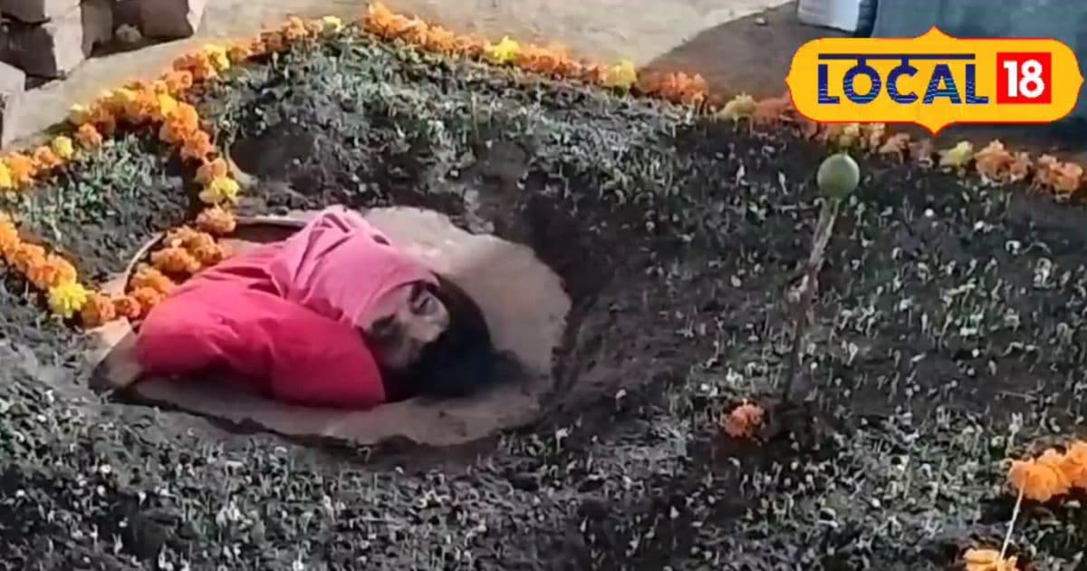 खरगोन. नवरात्रि में मां भगवती को प्रसन्न करने के लिए तमाम साधक कठिन से कठिन साधना करते हैं. वहीं, मध्य प्रदेश के खरगोन से भी एक साधु की अनोखी साधना सामने आई है, जो देवी भक्तों के लिए आश्चर्य बनी हुई है. खास बात ये कि साधु 9 दिन तक जमीन के अंदर समाधि लिए हुए हैं. उनका पूरा धड़ जमीन के अंदर है, सिर्फ सिर ही बाहर है. 5 दिन बीत चुके हैं. दशहरा तक वह ऐसी ही स्थिति में रहेंगे.