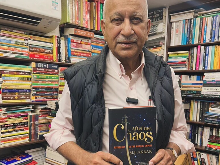 जाने माने पत्रकार एमजे अकबर अपनी किताब “आफ्टर मी, केयोस – एस्ट्रोलॉजी इन द मुगल एंपायर” के साथ, जो मुगल दौर में भारतीय ज्योतिष पर लिखी गई है. जिसमें ये बताया गया है कि मुगल शहंशाह किस कदर हिंदू ज्योतिषियों पर विश्वास करते थे और उनकी सलाह पर अमल करते थे. (फोटो सौजन्य – Bahrisons Booksellers)
