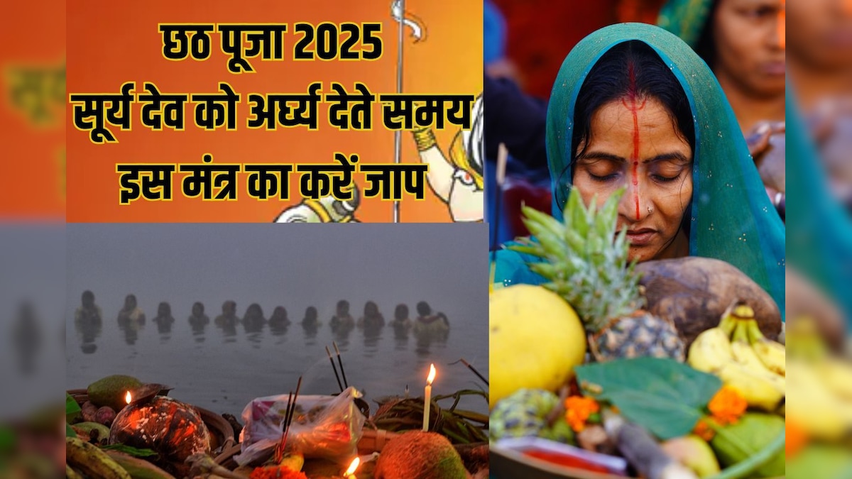 Chhath puja Surya Arghya Mantra: महापर्व छठ इस साल अक्टूबर महीने में 25 से 28 अक्टूबर तक मनाया जाएगा. छठ पर्व में सूर्य देवता और छठी मइया की पूजा-आराधना की जाती है. इस बार सूर्य देव को शाम का अर्घ्य 27 तारीख और सुबह का अर्घ्य 28 अक्टूबर को देकर पूजा का समापन किया जाएगा. 25 और 26 को नहाय खाय खरना है. आप पूजा के दौरान सूर्य देवता को अर्घ्य देते समय छठ पूजा के मंत्रों का जाप जरूर करें. इससे भगवान सूर्य और छठी मइया का आशीर्वाद प्राप्त होगा. आप सूर्य देव मंत्र में छठ पूजा स्पेशल ॐ सूर्यदेवाय नमो नमः, “ऊँ ऐही सूर्यदेव सहस्त्रांशो तेजो राशि जगत्पते। अनुकम्पय मां भक्त्या गृहणार्ध्य दिवाकर:” और “ॐ सूर्याय नम:, ॐ भास्कराय नम:, ॐ रवये नम:” जैसे सूर्य देव के १२ नामों वाले मंत्रों का जाप जरूर करें.