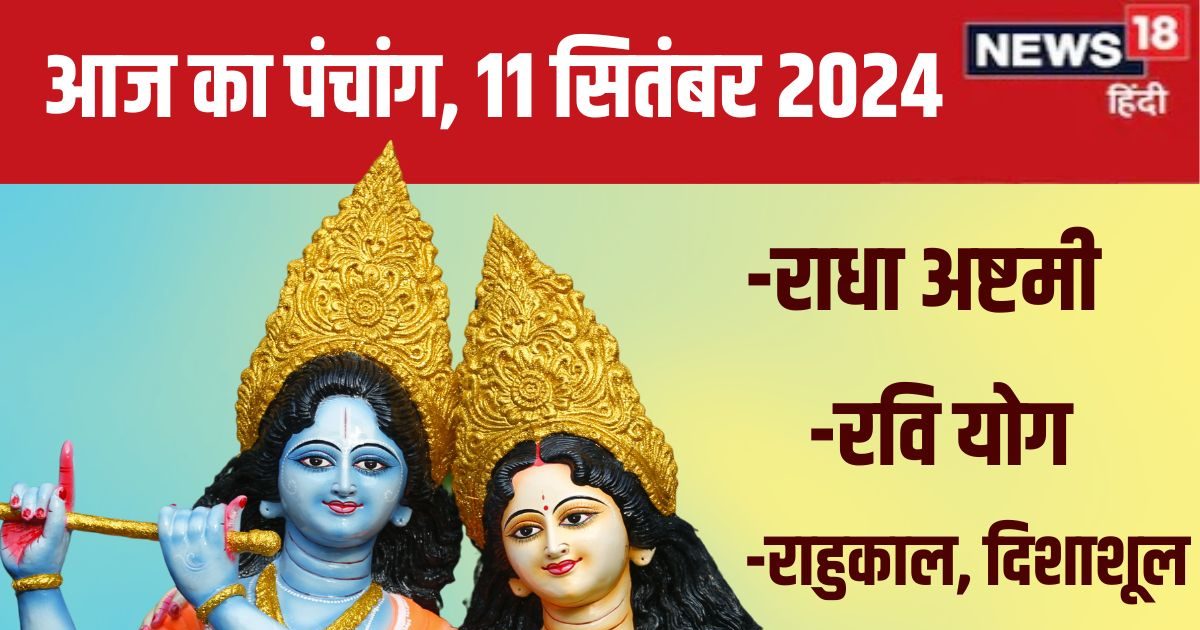 आज का पंचांग, 11 सितंबर 2024: राधा अष्टमी का पावन पर्व 3 शुभ योग में है. राधा अष्टमी के दिन भाद्रपद माह के शुक्ल पक्ष की अष्टमी तिथि, ज्येष्ठा नक्षत्र, प्रीति योग, विष्टि करण, उत्तर का दिशाशूल और वृश्चिक राशि का चंद्रमा है. राधा अष्टमी के अवसर पर रवि योग, प्रीति योग और आयुष्मान् बन रहे हैं. पौराणिक कथा के अनुसार, श्रीकृष्ण प्रिया राधारानी का जन्म भाद्रपद माह के शुक्ल पक्ष की अष्टमी तिथि को हुआ था, इस वजह से हर साल इस तिथि को राधारानी का जन्मदिन मनाते हैं, जिसे राधा अष्टमी कहते हैं. भगवान श्रीकृष्ण का जन्म भाद्रपद कृष्ण अष्टमी को हुआ था. उनके जन्मदिन के 15 दिन बाद राधा अष्टमी मनाई जाती है. जो लोग राधा अष्टमी का व्रत रखकर लाडली जी की पूजा करते हैं, उनको भगवान श्रीकृष्ण की कृपा प्राप्त होती है. जीवन में सुख और समृद्धि आती है.