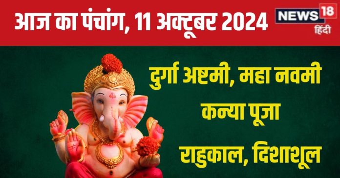 आज का पंचांग, 11 अक्टूबर 2024: शारदीय नवरात्रि का नौवां दिन शुक्रवार को है. इस दिन दुर्गा अष्टमी और महा नवमी दोनों मनाई जा रही है. इस दिन अश्विन शुक्ल अष्टमी तिथि, उत्तराषाढा नक्षत्र, सुकर्मा योग, बव करण, पश्चिम का दिशाशूल और धनु राशि में चंद्रमा है. दृक पंचांग के अनुसार, दोपहर में 12:06 बजे के बाद से नवमी तिथि लग रही है. कई जगहों पर दुर्गा अष्टमी का व्रत 9 अक्टूबर को रखा गया. जो लोग दुर्गा अष्टमी और महा नवमी साथ में मना रहे हैं, वे सुकर्मा योग में मां महा गौरी और मां सिद्धिदात्री की पूजा करें. उसके बाद नवरात्रि का हवन करें. फिर कन्या पूजा जरूर करें. धार्मिक मान्यताओं के अनुसार, 2 से 10 वर्ष तक की कन्याओं को मां दुर्गा का स्वरूप माना जाता है. उनकी पूजा करने से मां दुर्गा प्रसन्न होती हैं और मनोकामनाएं पूरी करती हैं. जो लोग 9 दिन का व्रत हैं, वे दशमी को पारण करके व्रत को पूरा करेंगे. दुर्गा अष्टमी और महा नवमी के दिन सुकर्मा योग के साथ रवि योग और सर्वार्थ सिद्धि योग बन रह हैं, लेकिन ये नवमी तिथि में होंगे.