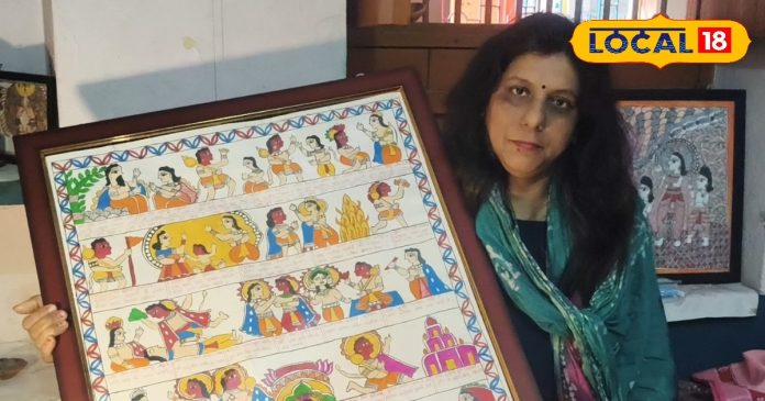 Hanuman Chalisa in Mithila Painting: मुजफ्फरपुर की इपाशा पाठक ने मिथिला पेंटिंग में हनुमान चालीसा के 40 श्लोकों को चित्रित किया है. इपाशा पाठक बताती हैं कि हनुमान चालीसा को मिथिला पेंटिंग के रूप में प्रस्तुत करने के पीछे उनका मुख्य उद्देश्य लोगों को सनातन धर्म से जोड़ना है. इसको बनाने में 25 दिन लगा. इसकी मांग देश-विदेश में बढ़ रही है.