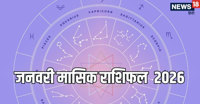 January Monthly 2026 Rashifal: जनवरी मासिक राशिफल 2026 ग्रह-नक्षत्र के लिहाज से काफी महत्वपूर्ण रहने वाला है क्योंकि इस मास में मकर राशि में बुध, मंगल शुक्र और सूर्य ग्रह की युति बनने वाली है. यानी एक राशि में चार ग्रहों की युति भी बनेगी. वहीं कुछ समय के लिए चंद्रमा भी मकर राशि में प्रवेश करेंगे, जिससे मकर राशि में एक साथ पांच ग्रहों की युति बनने वाली है. पांच ग्रहों की युति से पंचग्रही योग के अलावा लक्ष्मी नारायण योग, रूचक राजयोग समेत कई शुभ योग का निर्माण भी हो रहा है. जनवरी 2026 का महीना कुछ राशियों के लिए फायेदमंद रहने वाला है तो कुछ राशियों को इस मास में उतार-चढ़ाव का सामना करना पड़ सकता है. ऐसे में जनवरी का महीना मेष से लेकर मीन तक सभी 12 राशियों के लिए कैसा रहेगा, जानिए साल 2026 का जनवरी मासिक राशिफल…