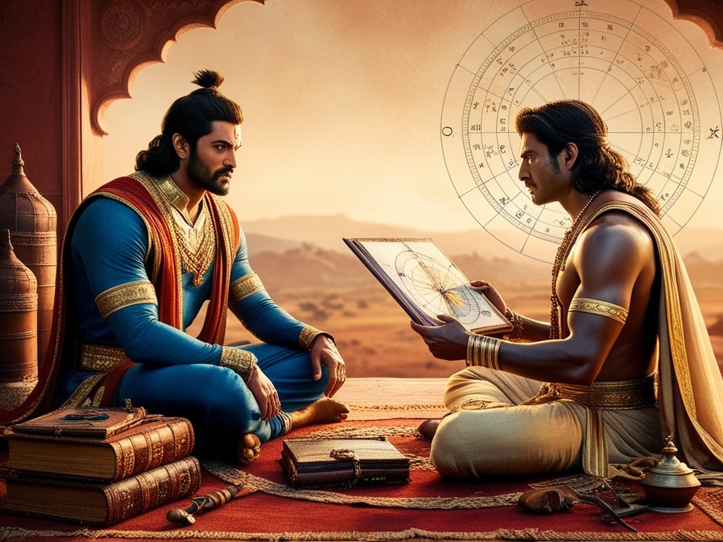 सहदेव अपने समय में ज्योतिष के सबसे बड़े प्रकांड विद्वान माने जाते थे. ग्रह-नक्षत्रों की चाल और भविष्य में होने वाली घटनाएं उन्हें मालूम रहती थीं. (image generated by Leonardo AI)