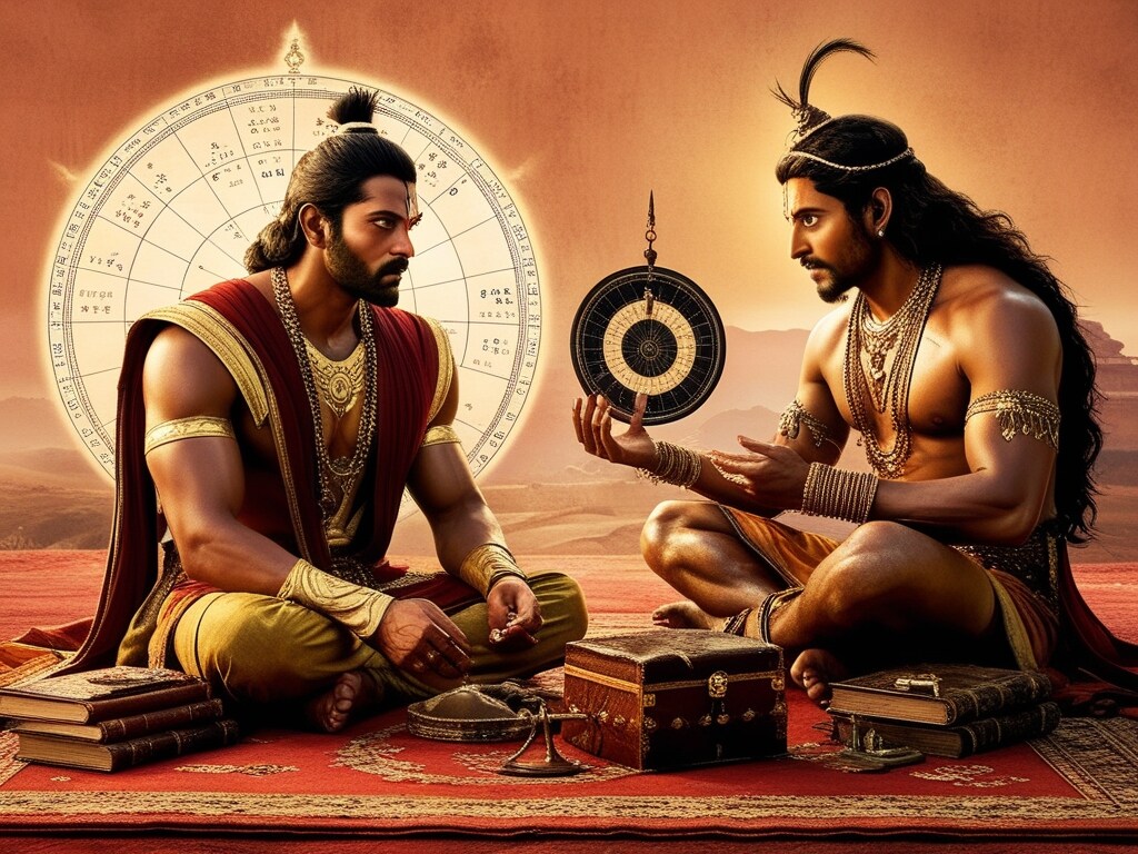 महाभारत युद्ध से पहले पांडवों का सबसे बड़ा दुश्मन दुर्योधन खुद सहदेव से ज्योतिष सलाह लेने पहुंचा. उसने ऐसी सलाह मांगी, जो पांडवों के खिलाफ जाने वाली थी लेकिन सहदेव ने वो दुर्योधन को दी. (image generated by Leonardo AI)