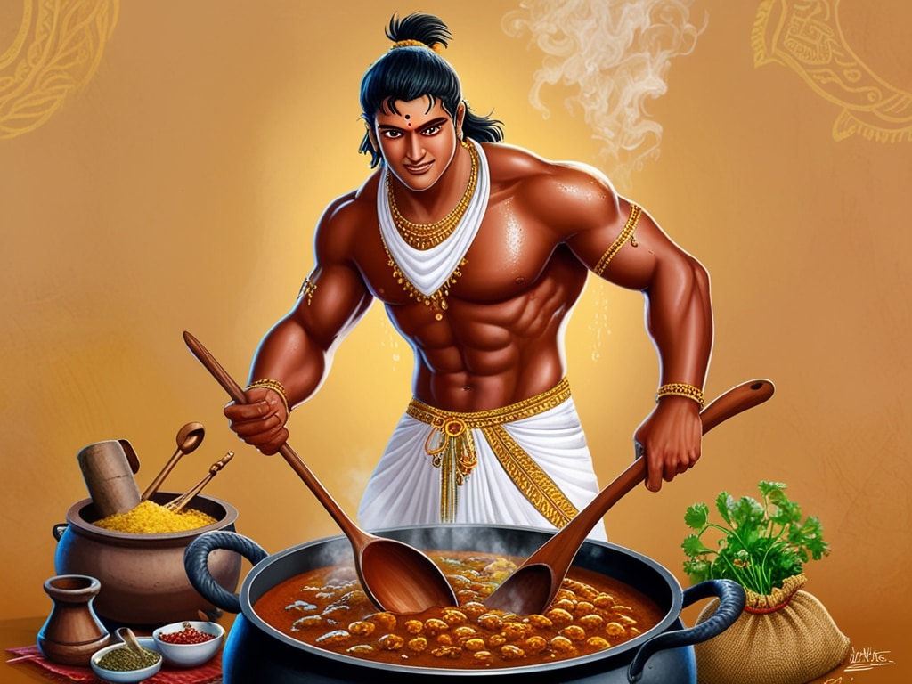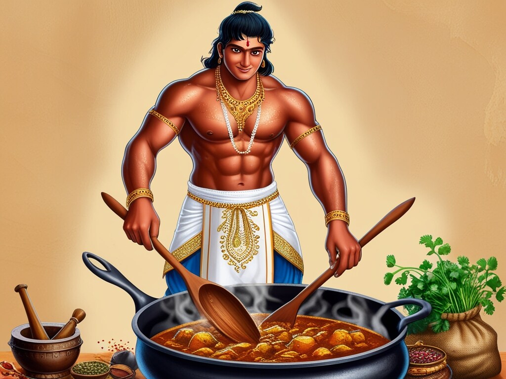 भीम खाना बनाने की कला शायद मां कुंती और द्रौपदी से सीखी थीवनवास के दौरान उन्होंने पांडवों को एक से एक खाना बनाकर खिलायाविराट के राजमहल में वह रसोई के प्रभारी थे और लजीज खाना बनाते थे