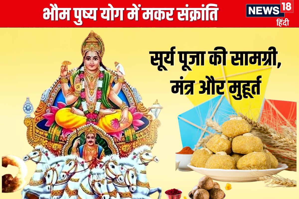 इस साल मकर संक्रांति 14 जनवरी मंगलवार के दिन है. मकर संक्रांति पर दुर्लभ भौम पुष्य योग बन रहा है. इस दिन सुबह में पुनर्वसु नक्षत्र है, जो 10:17 ए एम तक रहेगा. उसके बाद से पुष्य नक्षत्र प्रारंभ होगा. इसकी वजह से भौम पुष्य योग का निर्माण होगा. मकर संक्रांति के दिन स्नान और दान करने का विधान है. स्नान के बाद सूर्य देव की पूजा करते हैं. सूर्य कृपा से जीवन में सुख, समृद्धि आती है. स्नान और दान से पुण्य की प्राप्ति होती है. मकर संक्रांति की पूजा के लिए आवश्यक सामग्री का होना जरूरी है. तिरुपति के ज्योतिषाचार्य डॉ. कृष्ण कुमार भार्गव से जानते हैं कि मकर संक्रांति पर भौम पुष्य योग कब से कब तक है? मकर संक्रांति की पूजा सामग्री क्या है?
